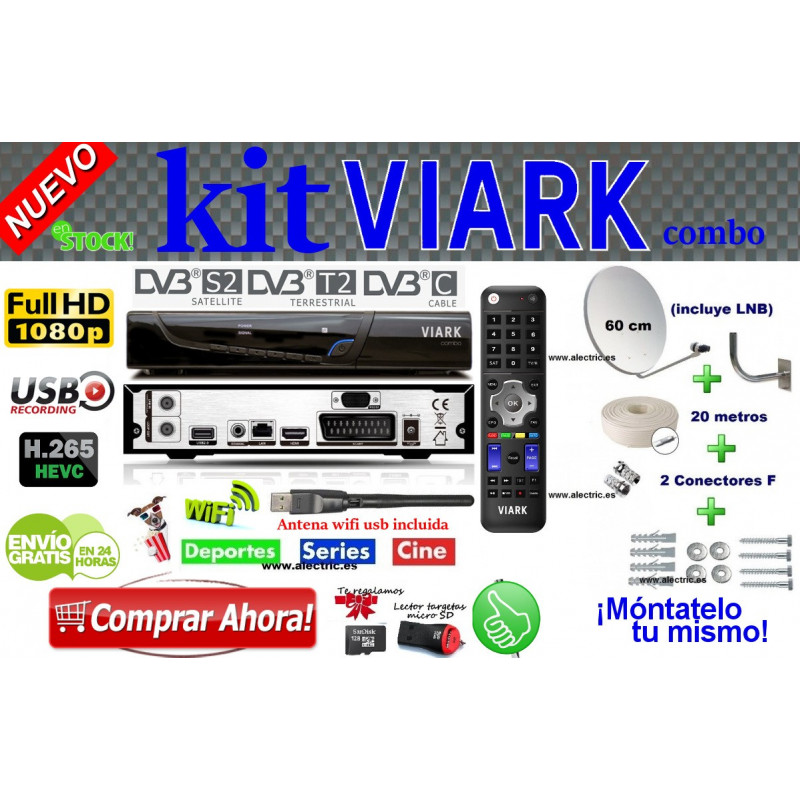 Antena wifi viark combo. He adquirido recientemente un viark combo y ya lo tengo funcionando y todo perfecto. Te recomendamos que realices tu compra en nuestra tienda online distribuidora oficial satelicenter com donde podrás encontrar los mejores precios 2 años. Este nuevo receptor viark combo es el nuevo receptor de la marca viark que remplaza los receptores qviart y vuga en todas sus versiones en esta ocasión hablaremos de todas las funcionalidades que tiene este nuevo receptor viark combo. El decodificador combo de viark permite visualizar la televisión de señal satélite terrestre y por cable en un solo equipo este receptor tiene antena wi fi y puerto ethernet para conectarlo a internet.