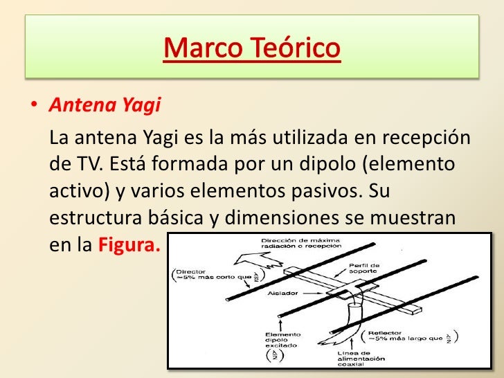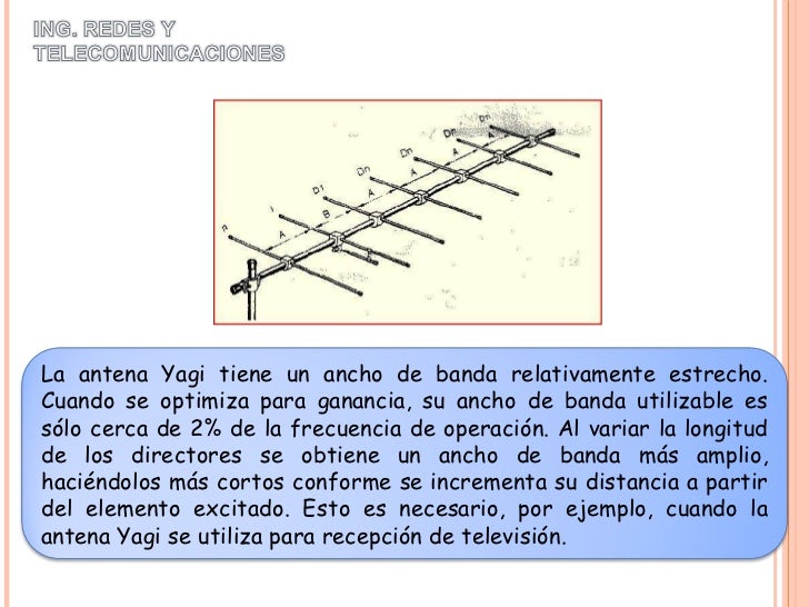 La fase y la amplitud de la corriente que circula en el elemento parásito dependerán de la distancia entre los dos elementos y de la longitud y diámetro de este último. Debido a que la señal se concentra en un haz estrecho una yagi puede recibir o enviar señales que de otra manera serían demasiado débiles para entender. En esta antena sobresale la invención de uitar la tierra a las ya convencionales antenas groundbreaking lo cual produjo que mediante una. Se utiliza habitualmente en las bandas de hf vhf y uhf en aplicaciones de radiodifusión de televisión estaciones de radioaficionados y radioenlaces punto a punto.