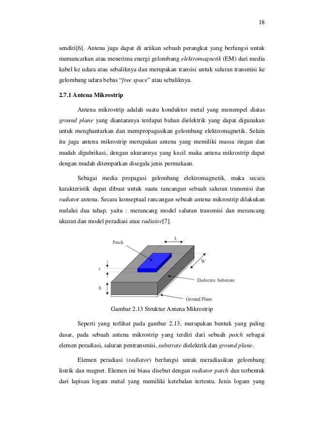 Untuk antena yang bekerja pada band vlf lf hf vhf dan uhf bawah jenis antena kawat wire antenna dalam prakteknya sering digunakan seperti halnya antena dipole 1 2l antena monopole dengan ground plane antena loop antena yagi uda array antena log periodik dan sebagainya. Semoga bermanfaat mohon maaf jika ada. Nitali garg and dr. Gambar 2 1 bentuk umum antena microstrip.