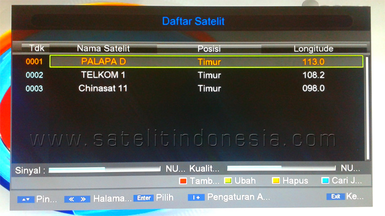 Update daftar kode freq transponder satelit palapa d at 113 0 e hanya channel fta bisa di terima dengan receiver parabola dvb s mpeg2 fta dan receiver dvb s2 mpeg 4 hd hanya bisa di terima dengan receiver parabola dvb s2 mpeg 4 hd freq polarity sym rate nama channel video pid audio pid pcr pid 4080 h. Sebut saja seperti diseqc 22k dan pengaturan lain. Jelas kalau hanyagunain 1 lnb harus gerakin. Saat hendak tracking satelit palapa dan telkom tentu kita harus setting terlebih dahulu pengaturan satelit di receiver tv parabola karena jika salah setting tentu info sinyal tidak akan muncul.